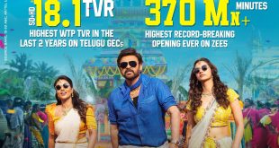 ZEE5 இல் “சங்கராந்திகி வஸ்துனம்” திரைப்படம், 360 மில்லியன் ஸ்ட்ரீமிங் நிமிடங்களைக் கடந்த புதிய சாதனை படைத்துள்ளது !! இந்தியாவின் முன்னணி வீடியோ ஸ்ட்ரீமிங் தளமான ZEE5 இல் , கடந்த மார்ச் 1ஆம் தேதி வெளியான “சங்கராந்திகி வஸ்துனம்” திரைப்படம், மிகப்பெரிய வரவேற்பைக் குவித்து, சாதனை படைத்துள்ளது. இத்திரைப்படம் 360 மில்லியன் ஸ்ட்ரீமிங் நிமிடங்களைக் கடந்து, இதுவரையிலான ஸ்ட்ரீமிங்க் சாதனைகளைத் தகர்த்துள்ளது. ZEE தொலைக்காட்சியில் இத்திரைப்படத்தின் உலக தொலைக்காட்சி …