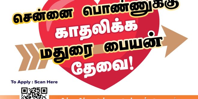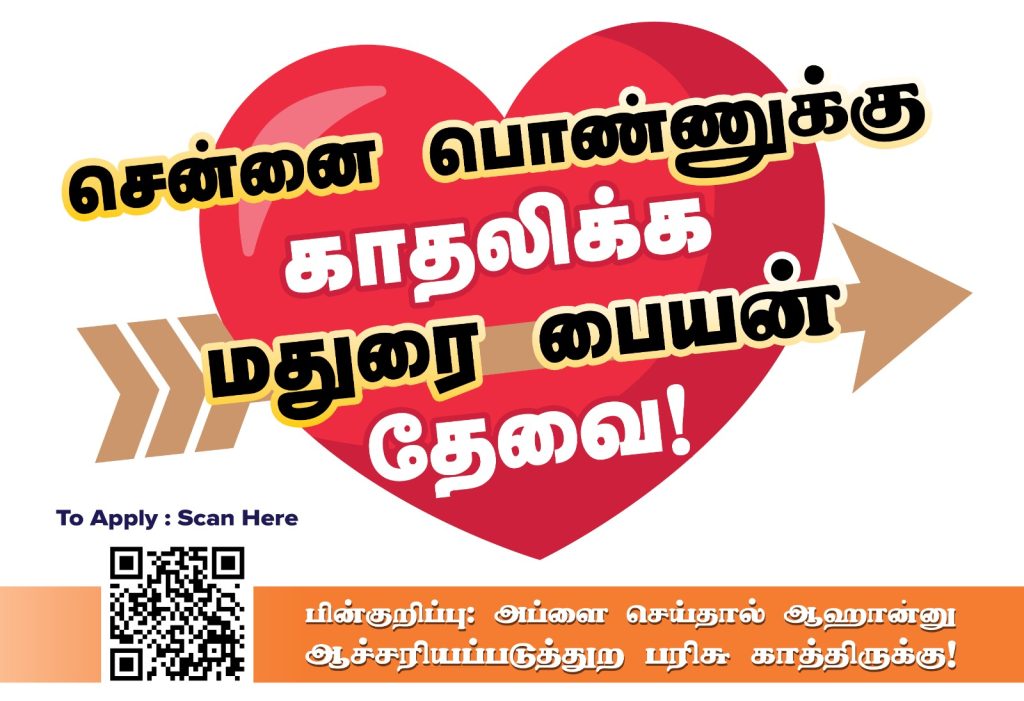 காதலர் தினம் நெருங்கி வரும் நிலையில் சென்னை மற்றும் மதுரை சுற்றுவட்டாரங்களில் காதலிக்க மதுரை பையன் வேண்டும் என்று போஸ்டர் ஒட்டி இருக்கும் சென்னை பொண்ணு.
