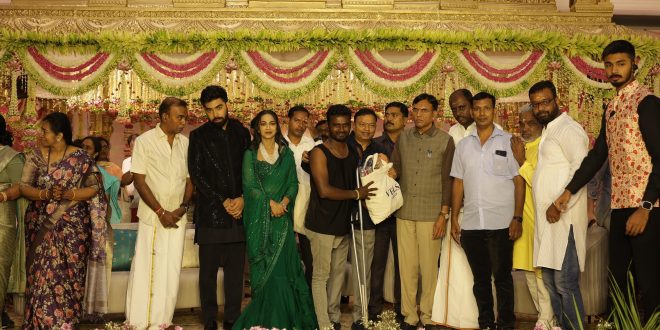 இந்த திருமணத்தையொட்டி ஆதரவற்ற மற்றும் மாற்றுத்திறனாளி மாணவ மாணவிகள், முதியோர் என 1500 பேருக்காக மட்டும் நேற்று மாலை சிறப்பு திருமண வரவேற்பு நடைபெற்றது. ஆதரவற்ற குழந்தைகள், முதியோர்கள், சிறப்புக்குழந்தைகளின் நடனமும் இசைக்கச்சேரி மற்றும் விருந்துடன் ஒவ்வொருவர்களுக்கும் பரிசு பொருட்களை வழங்கி தனது மகிழ்ச்சியை பகிர்ந்துக்கொண்டார்.