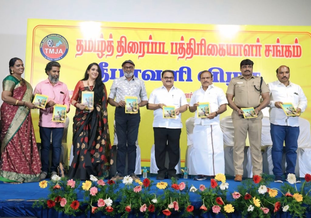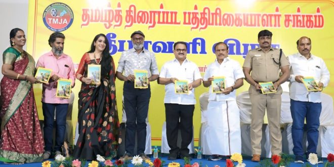 தமிழ்த்திரைப்பட பத்திரிகையாளர் சங்க தீபாவளி மலர் வெளியீட்டு விழா,வழக்கம்போல் சென்னை பிரசாத் லேப்பில் சிறப்பாக நடந்தது. 2025ம் ஆண்டு சங்க தீபாவளி மலர் வெளியீட்டுவிழாவில் மாண்புமிகு அமைச்சர் சி.வி.கணேசன்(தொழிலாளர் நலன், திறன்மேம்பாட்டுதுறை), பூச்சி.எஸ்.முருகன்( தமிழ்நாடு வீட்டுவசதிவாரியதலைவர், நடிகர் சங்க துணைத்தலைவர்) மற்றும் நா.இளங்கோவன் (அசிஸ்டென்ட் கமிஷனர் ஆப் போலீஸ், ஆவடி), தேசியவிருது பெற்ற நடிகர் எம்.எஸ்.பாஸ்கர், கடலோரகவிதைகள் ரேகா, தயாரிப்பாளர் கே.சம்பத்குமார்(எஸ்.கே.பிக்சர்ஸ்) ஆகியோர் கலந்து கொண்டு சிறப்பித்தனர். மேலும் விழாவில் சங்க நிர்வாகிகள், உறுப்பினர்கள் தங்கள் குடும்பத்துடன் மகிழ்ச்சியுடன் கலந்துகொண்டனர்.