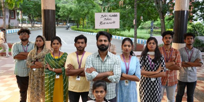Director K.R. Vinoth, college politics-ஐ cinematic-ஆ exaggerate பண்ணாம, ground-level-லே handle பண்ண முயற்சி பண்ணிருக்காரு.